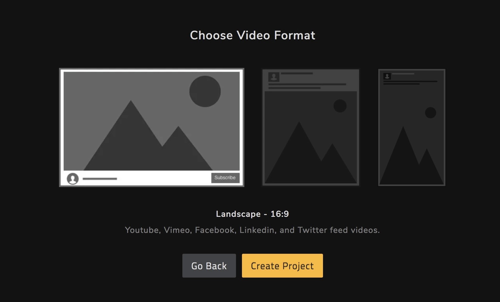 - Landscape — 16:9 best for Youtube, Vimeo, Facebook, Linkedin, and Twitter feed videos.