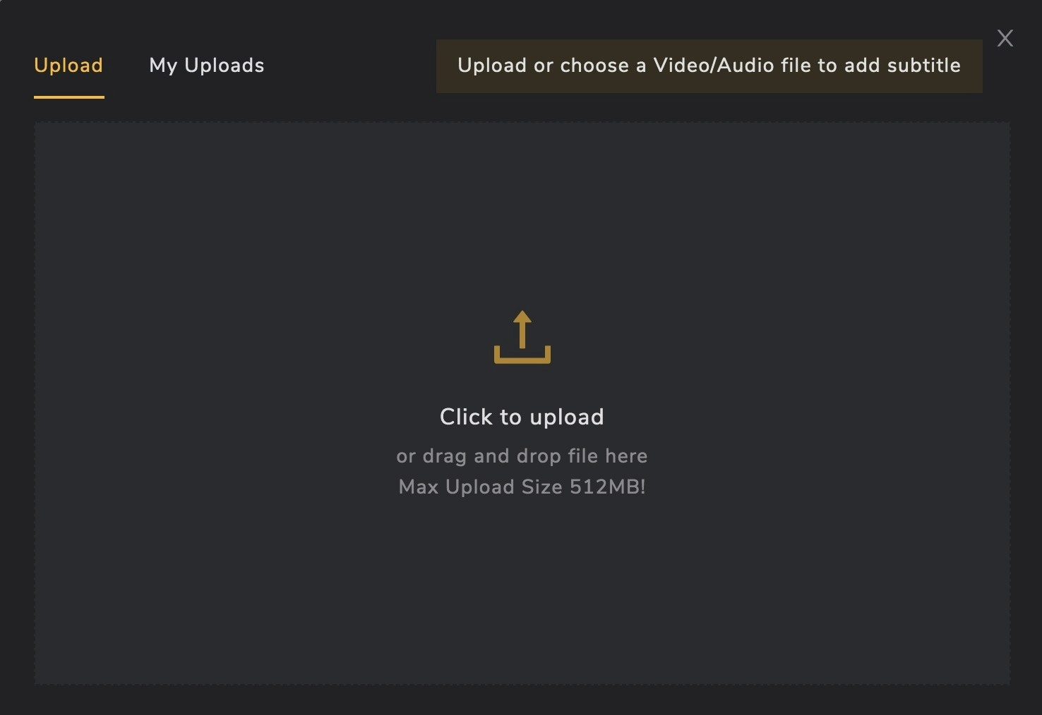 As soon as you land on the editor screen a popup will appear where you can upload the video you want to add open captions to. You can upload a video directly from your computer just drag & drop It’s super easy.