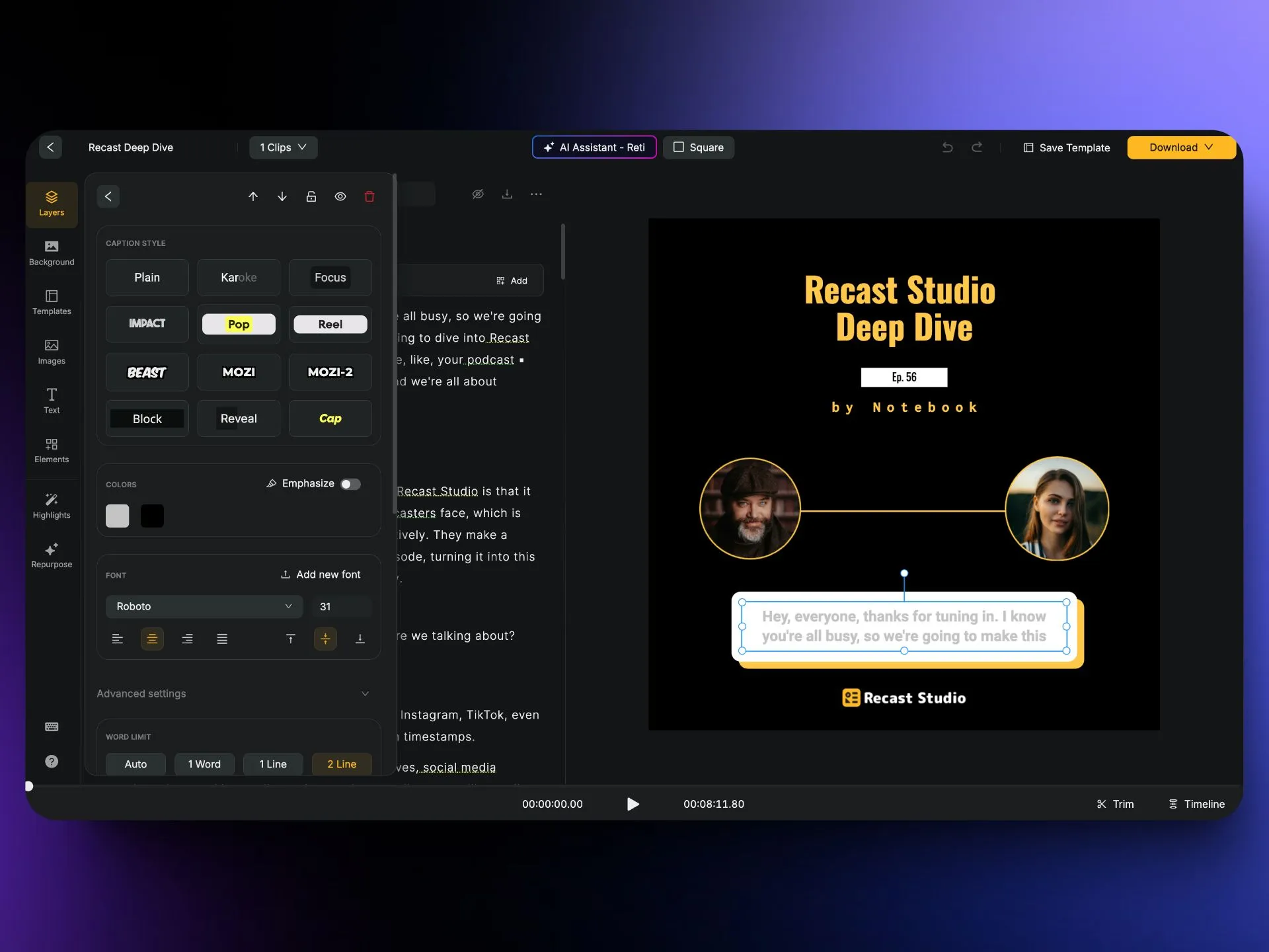 - We then introduced Recast Studio as a powerful tool for transforming audio content into engaging videos.