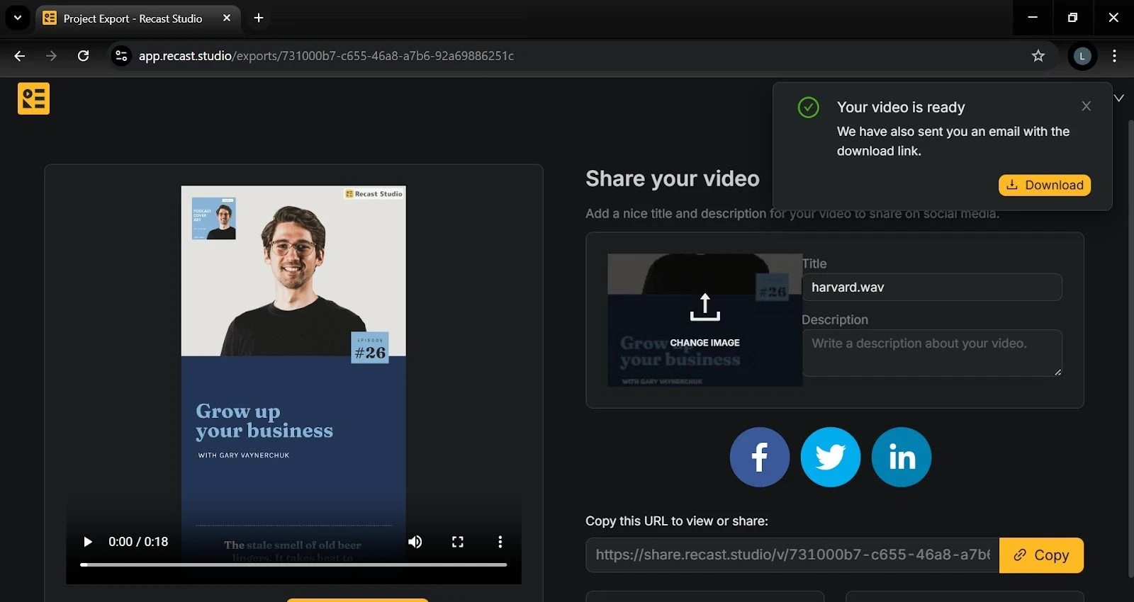 And that’s it; with Recast Studio, converting your podcast scripts into social media videos is efficient, consistent, and effortless.